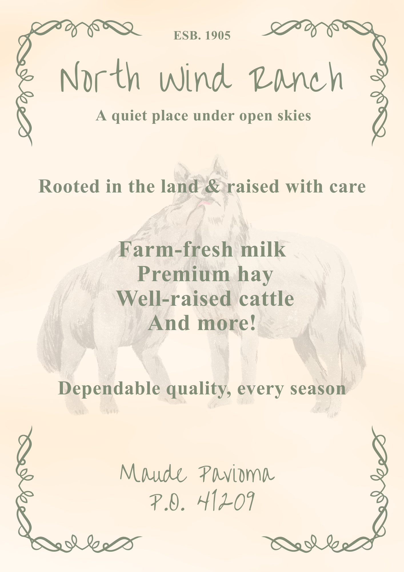 North Wind Ranch was founded on January 15, 1905, at Painted Sky and has remained active ever since. From the beginning, it focused on raising cattle with patience and care, especially milk cows. Over the years, the ranch became known for hand-milking, clean practices, and calm, healthy animals.